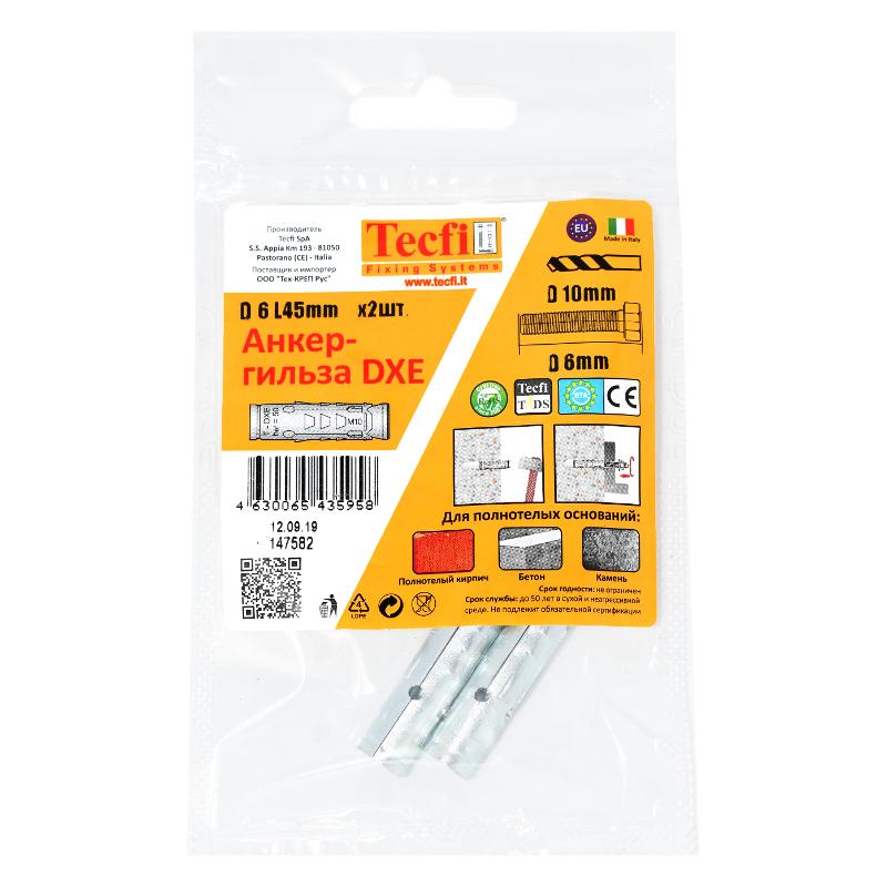 Анкер- гильза DXE ZN М6 (2 шт) - пакет | 147582 | Tecfi