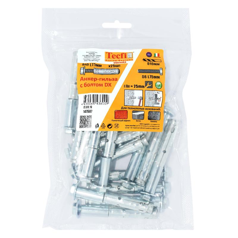 Анкер с болтом 8.8 DX ZN М6/25 (25 шт) - пакет | 147587 | Tecfi