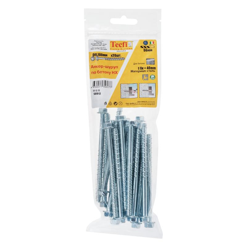 Анкер-шуруп для бетона 8x100/40 (20 шт) - пакет | 148913 | Tecfi