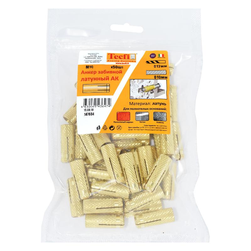 Анкер забивной латунный M10 (50 шт) - пакет | 147634 | Tecfi