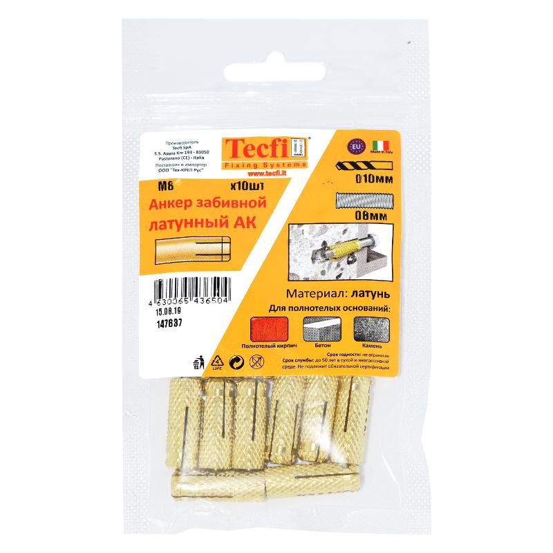 Анкер забивной латунный M8 (10 шт) - пакет | 147637 | Tecfi