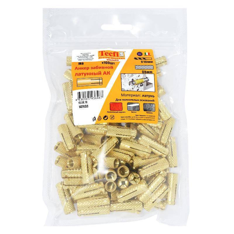 Анкер забивной латунный M8 (100 шт) - пакет | 147633 | Tecfi