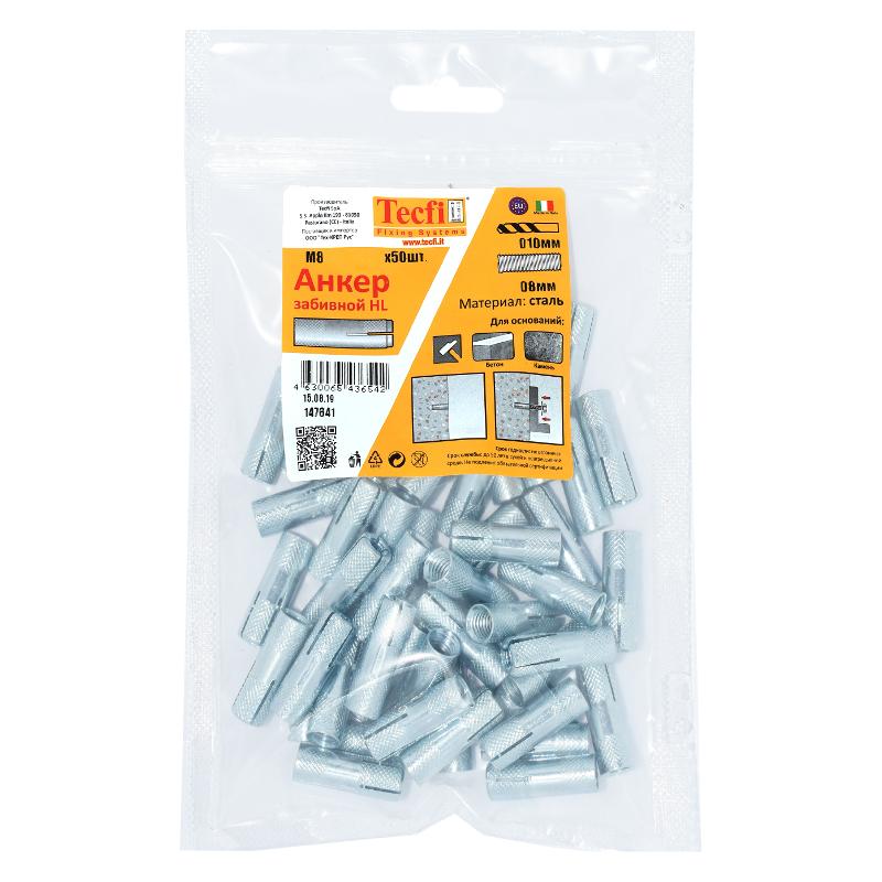 Анкер забивной ZN M8 (50 шт) - пакет | 147641 | Tecfi