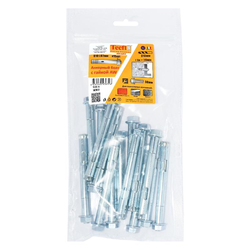Анкерный болт с гайкой AW ZN 10x97 (15 шт) - пакет | 147617 | Tecfi