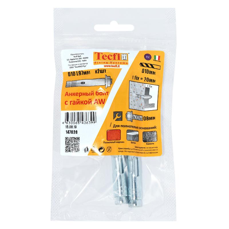 Анкерный болт с гайкой AW ZN 10x97/20 (2 шт) - пакет Tecfi