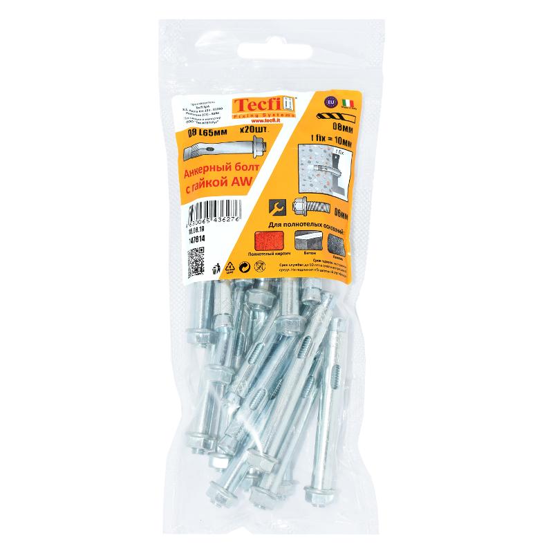 Анкерный болт с гайкой AW ZN 8x65 (20 шт) - пакет | 147614 | Tecfi