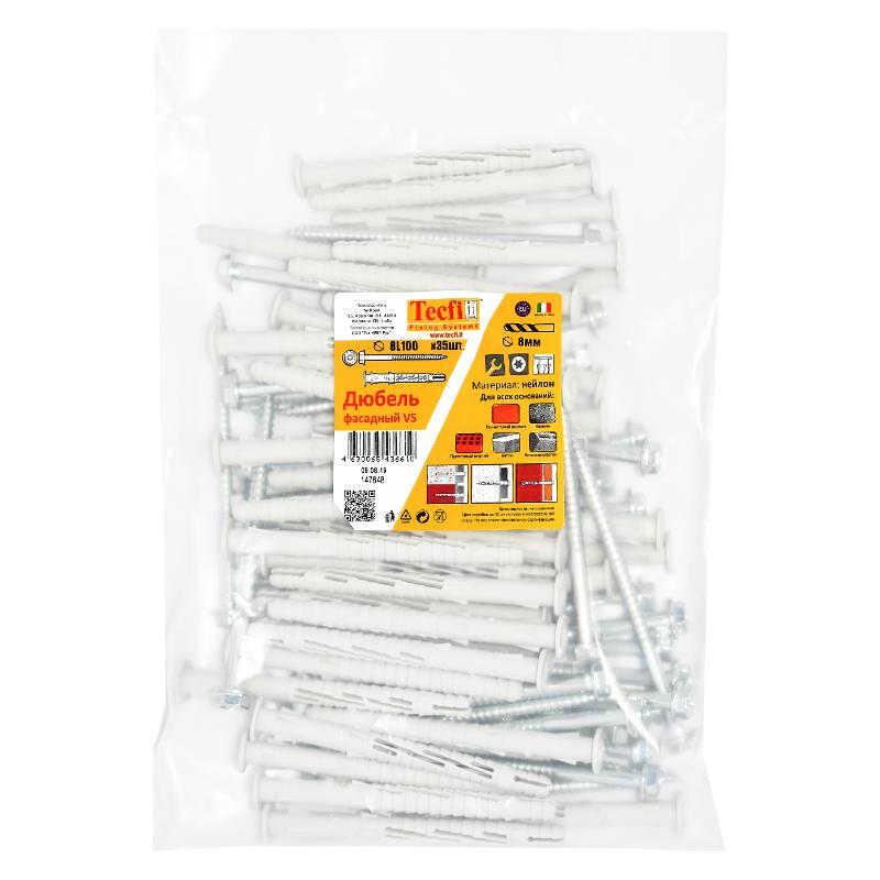 Дюбель фасад. с шурупом шест.гол. с шлицем TORX прессшайба 8x100 (35 шт) - пакет | 147648 | Tecfi