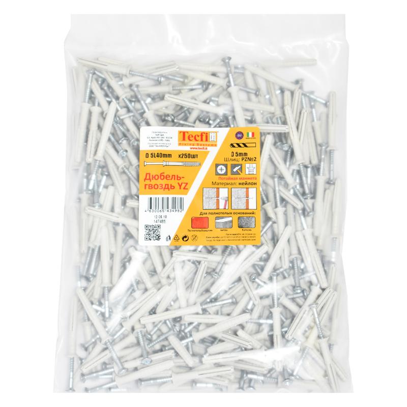 Дюбель-гвоздь YZ потайн. манжета нейлон 5x40 (250 шт)- пакет | 147485 | Tecfi