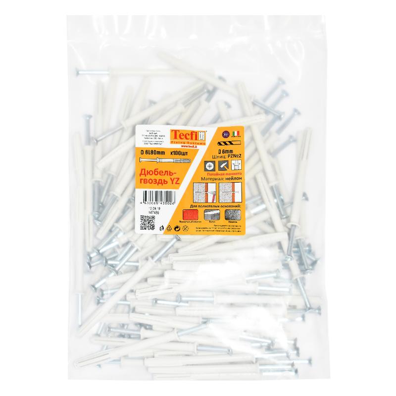 Дюбель-гвоздь YZ потайн. манжета нейлон 6x80 (100 шт)- пакет | 147489 | Tecfi