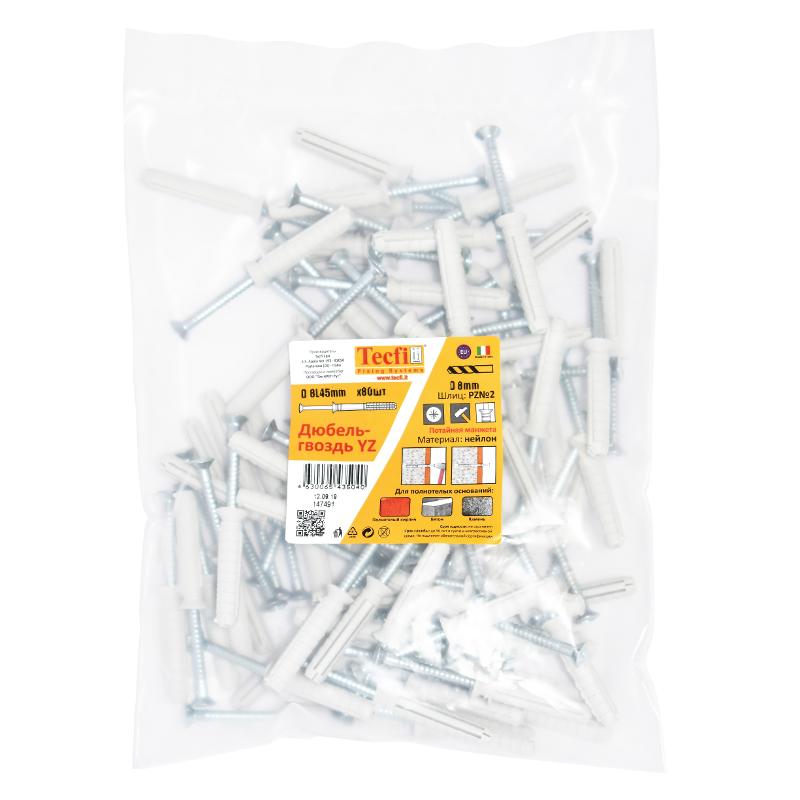 Дюбель-гвоздь YZ потайн. манжета нейлон 8x45 (80 шт)- пакет | 147491 | Tecfi