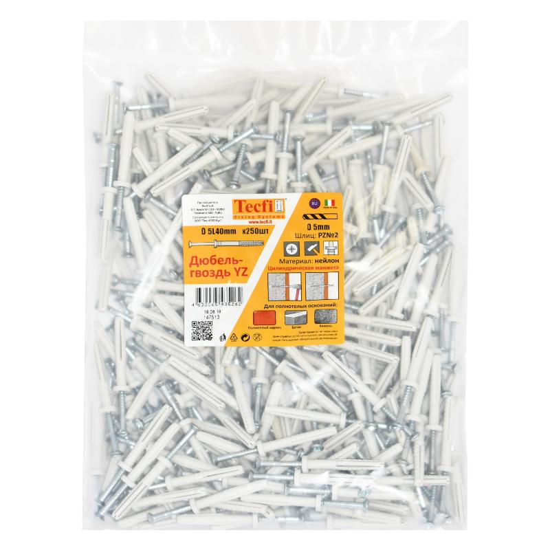 Дюбель-гвоздь YZ цилиндр. манжета нейлон 5x40 (250 шт)- пакет | 147513 | Tecfi