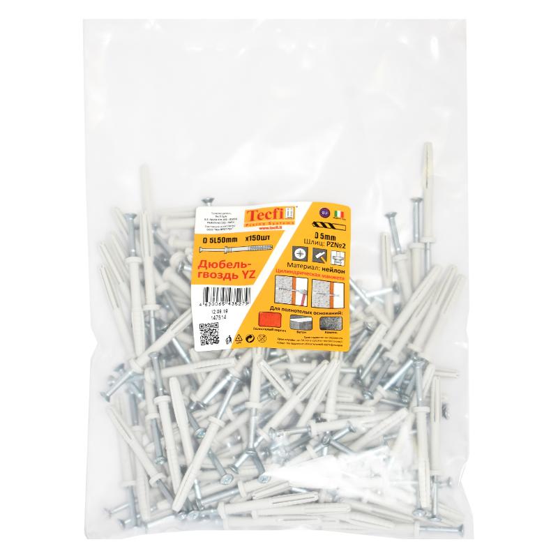 Дюбель-гвоздь YZ цилиндр. манжета нейлон 5x50 (150 шт) - пакет | 147514 | Tecfi