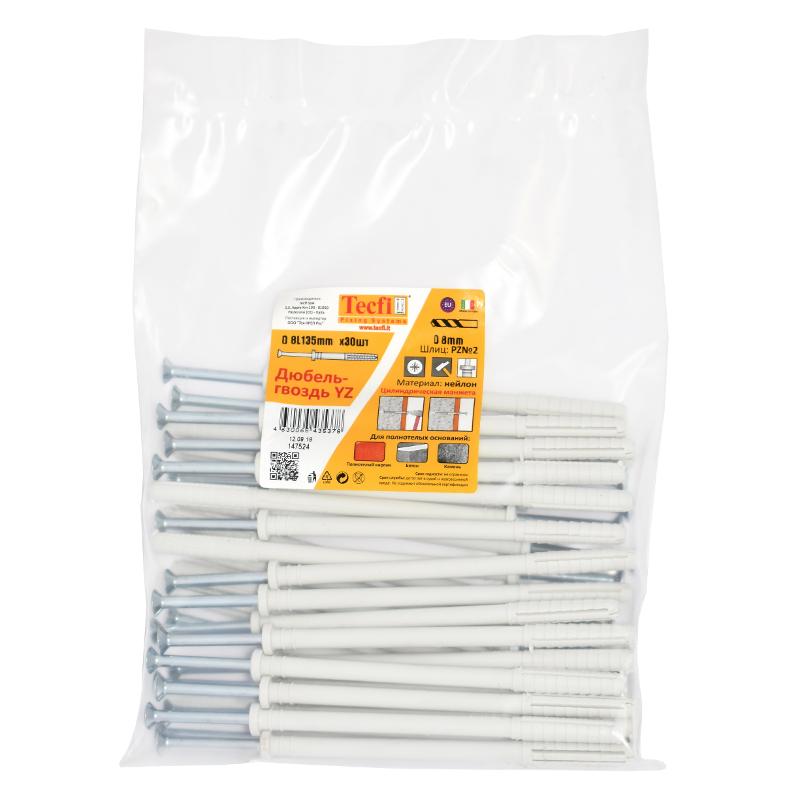 Дюбель-гвоздь YZ цилиндр. манжета нейлон 8x135 (30 шт)- пакет | 147524 | Tecfi