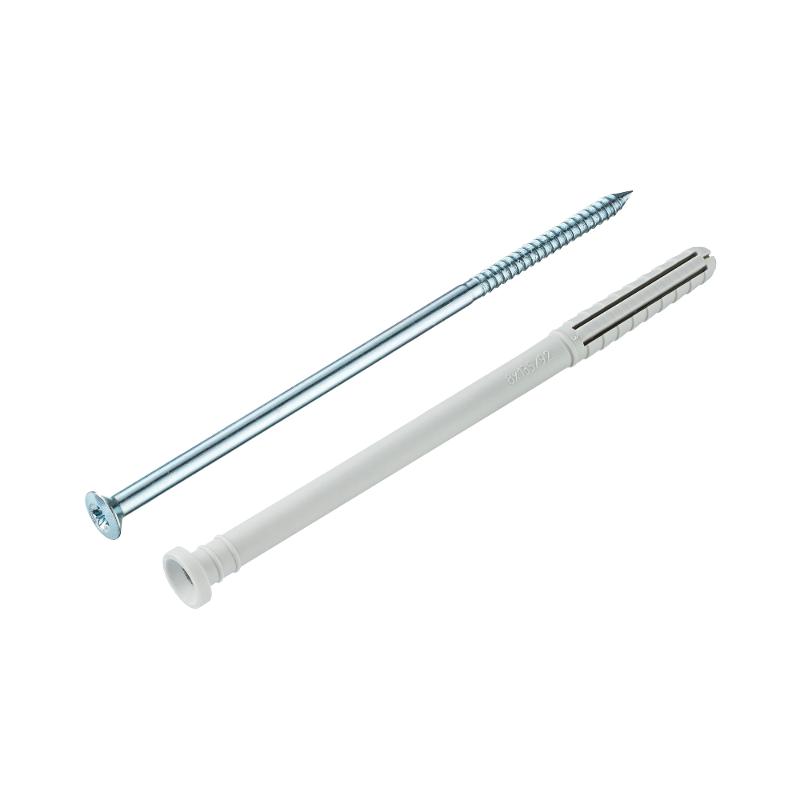 Используется для быстрого монтажа деталей малонагруженных изделий к конструкциям из полнотелых плотных материалов (бетон, кирпич), а также штукатурных сеток, маячков и т.д. Гвоздь, имеющий витой профиль и крестообразный шлиц, обеспечивает возможность простого демонтажа. Изготовлен из нейлона, что позволяет использовать дюбель вне помещений.