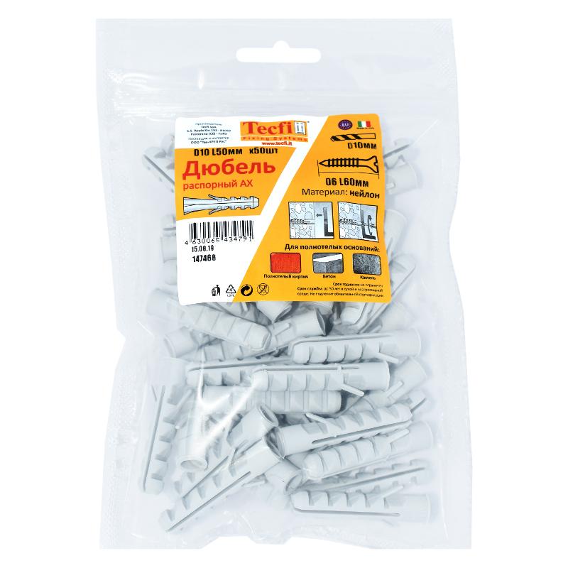 Дюбель распорный AX нейлон 10x50 (50 шт) - пакет | 147466 | Tecfi