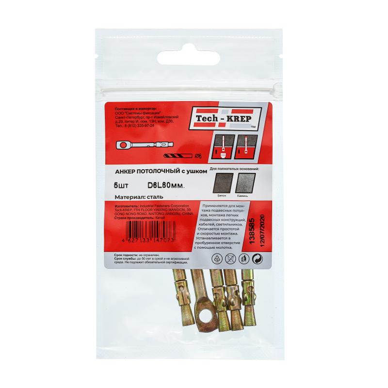 Анкер потолочный с ушком WAM 6х60 (5 шт) - пакет ( 0,059 кг) | 138585 | Tech-KREP