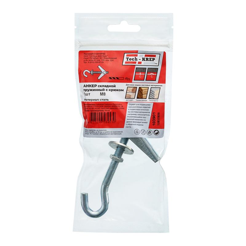 Анкер складной пружинный с крюком М8 (1 шт) - пакет ( 0,069 кг) | 103901 | Tech-KREP