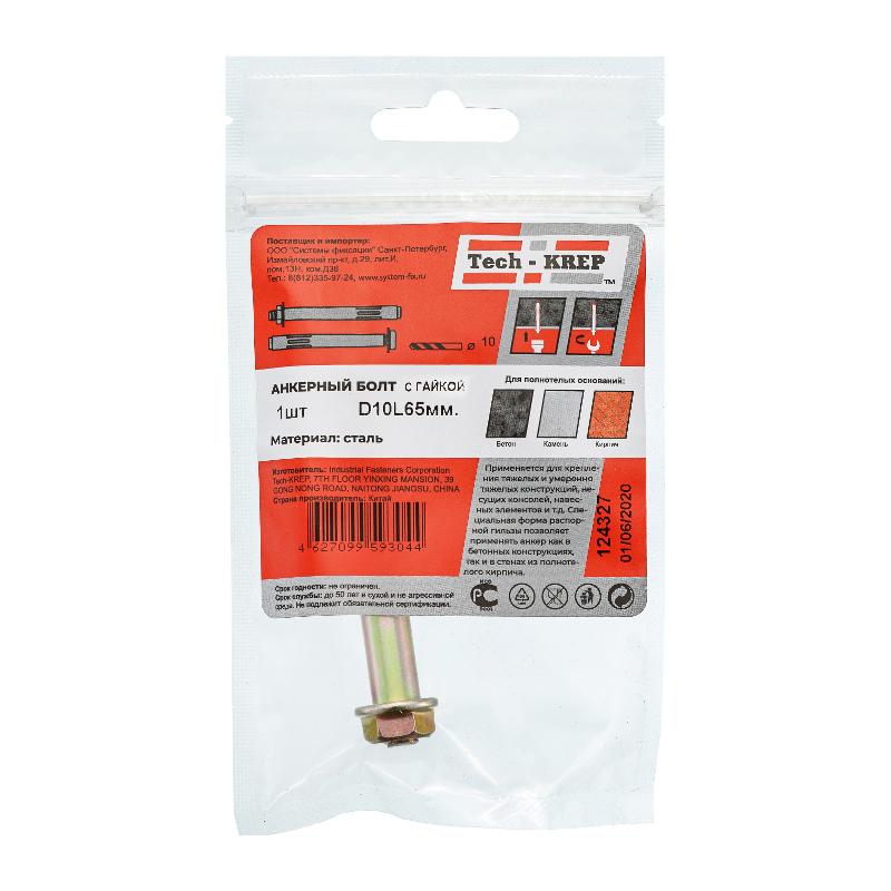 Анкерный болт с гайкой 10х60 (1 шт) - пакет ( 0,035 кг) | 124327 | Tech-KREP
