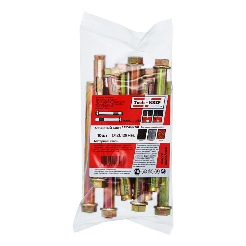Анкерный болт с гайкой 12х129 (10 шт) - пакет ( 0,983 кг) | 124331 | Tech-KREP