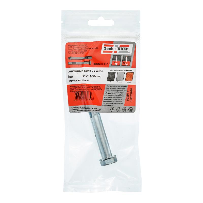 Анкерный болт с гайкой 12х200 (1 шт) - пакет ( 0,151 кг) | 124332 | Tech-KREP