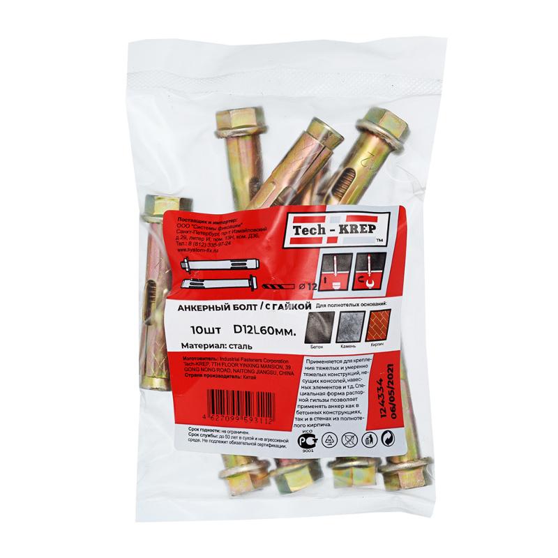 Анкерный болт с гайкой 12х60 (10 шт) - пакет ( 0,519 кг) | 124334 | Tech-KREP