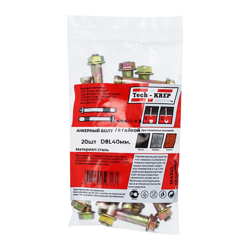 Анкерный болт с гайкой 8х40 (20 шт) - пакет ( 0,259 кг) | 124341 | Tech-KREP