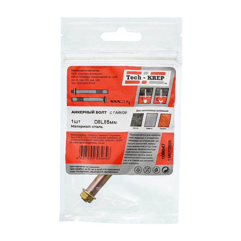 Анкерный болт с гайкой 8х85 (1 шт) - пакет ( 0,031 кг) | 108047 | Tech-KREP