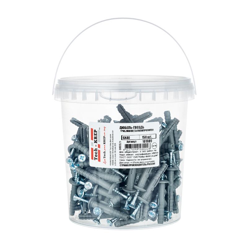 Дюбель-гвоздь 6х40 гриб. манжета (полипропилен) (150 шт) - ведро ( 0,576 кг) | 101989 | Tech-KREP