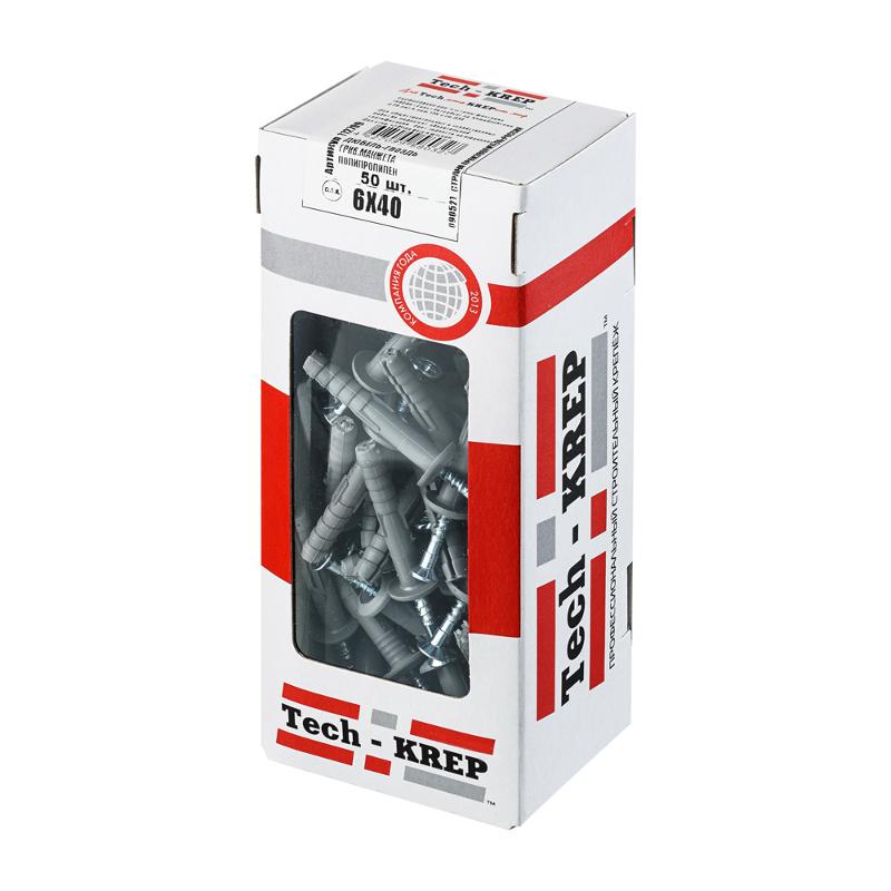 Дюбель-гвоздь 6х40 гриб. манжета (полипропилен) (50 шт) - коробка с ок Tech-Kre ( 0,202 кг) | 112709 | Tech-KREP