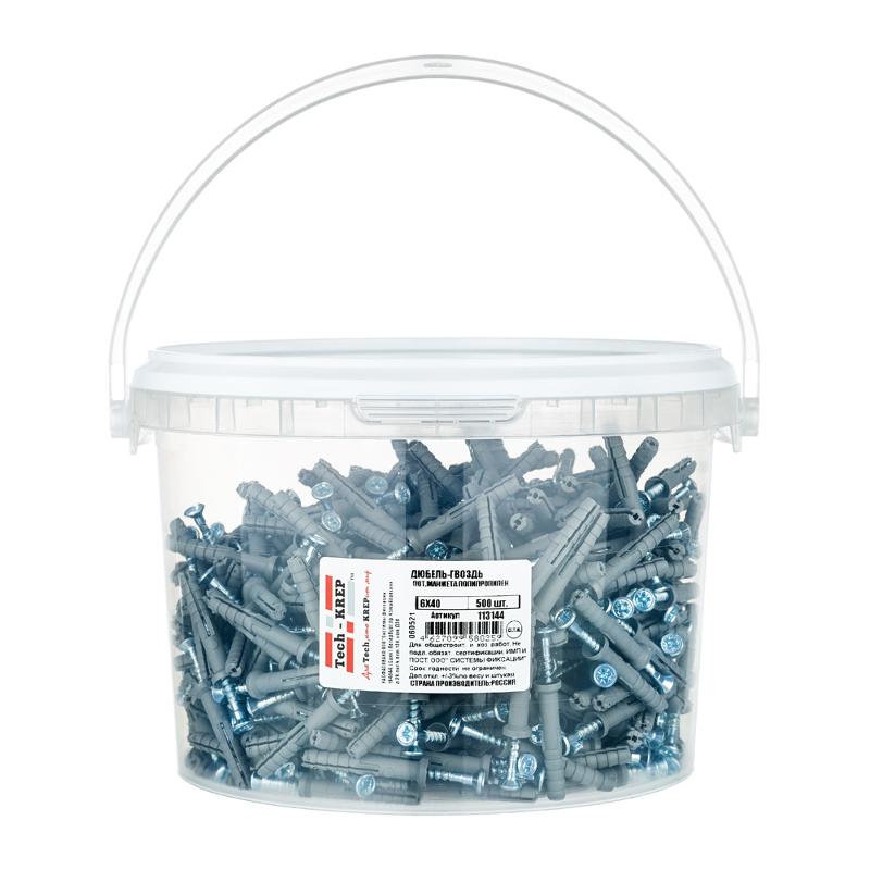 Дюбель-гвоздь 6х40 пот. манжета (полипропилен) (500 шт) - ведро ( 1,801 кг) | 113144 | Tech-KREP