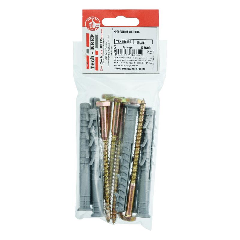 Фасадный дюбель TSX 10х100 (6 шт)- пакет ( 0,184 кг) | 127600 | Tech-KREP