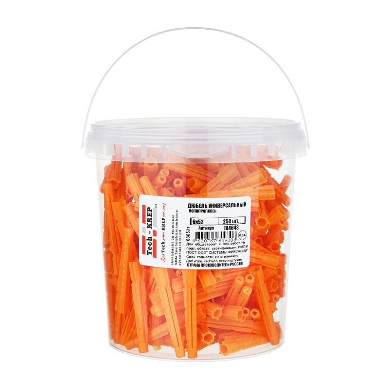 Дюбель универсальный 6х52 без бортика (250 шт) - ведро ( 0,223 кг) | 104643 | Tech-KREP
