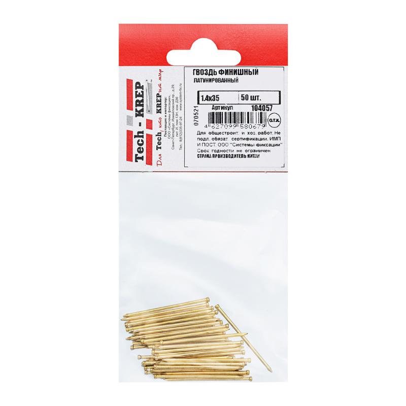 Гвоздь финишный латунированный 1,4х35 (50 шт) - пакет ( 0,03 кг) | 104057 | Tech-KREP