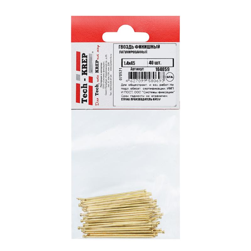 Гвоздь финишный латунированный 1,4х45 (40 шт) - пакет ( 0,028 кг) | 104059 | Tech-KREP
