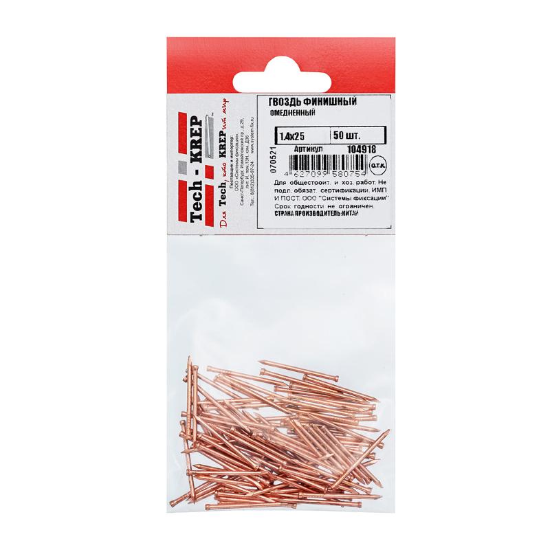 Гвоздь финишный омедненный 1,4х25 (50 шт) - пакет ( 0,023 кг) | 104918 | Tech-KREP