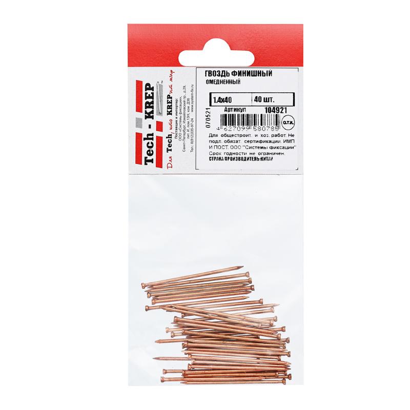 Гвоздь финишный омедненный 1,4х40 (40 шт) - пакет ( 0,025 кг) | 104921 | Tech-KREP