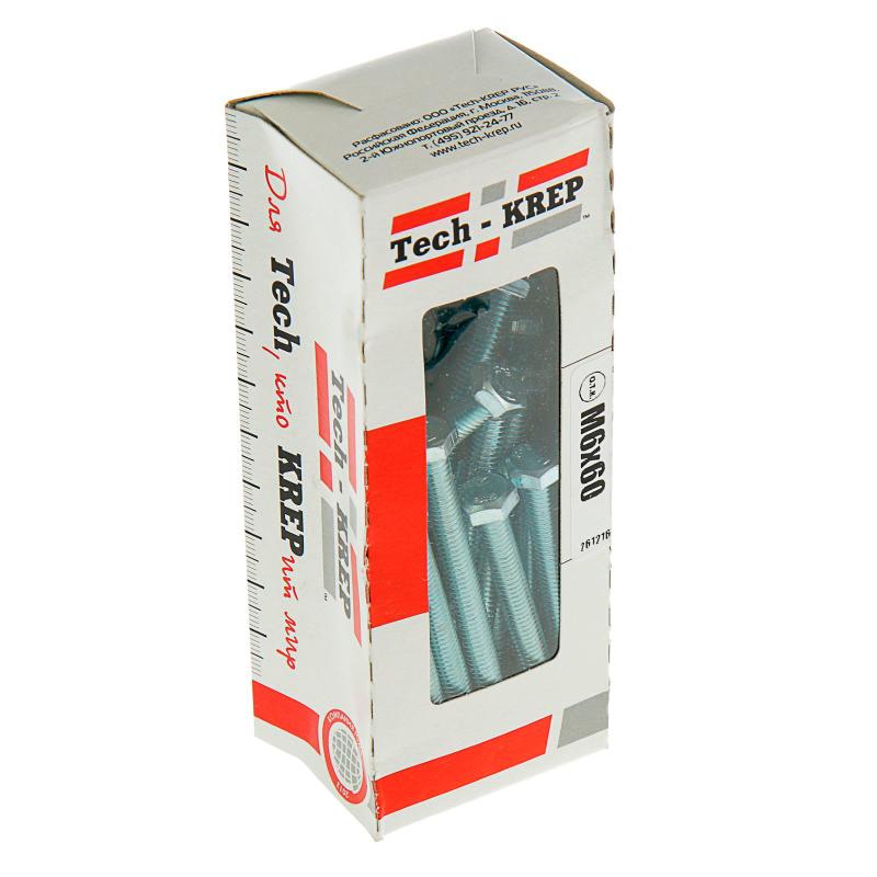 Болт DIN933 с шестигранной головкой оцинк. М6х60 (30 шт) - коробка с ок. Tech-Kr ( 0,386 кг) | 105206 | Tech-KREP