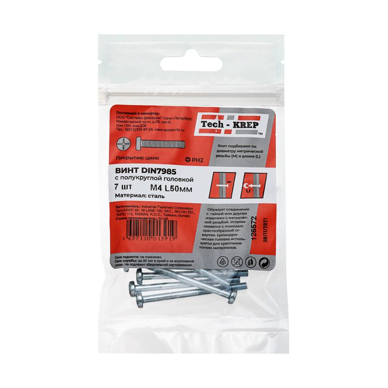 Винт DIN7985 с полукруглой головкой оцинк. М4х50 (7 шт) - пакет ( 0,023 кг) | 126572 | Tech-KREP
