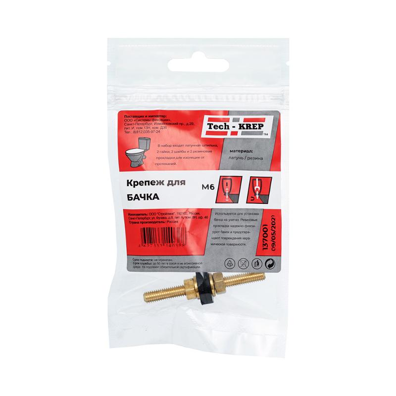 Крепеж для бачка (шпилька латунная с гайками для унитаза) М6- пакет | 137001 | Tech-KREP