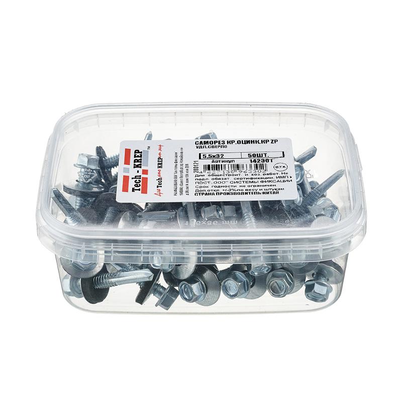 Саморез кр. оцин КРс ZP 5,5х32 удл.сверло 50шт - контейнер ( 0,299 кг) | 142301 | Tech-KREP