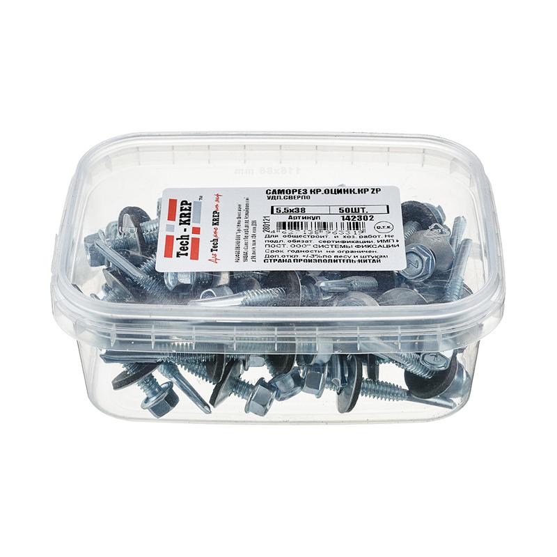 Саморез кр. оцин КРс ZP 5,5х38 удл.сверло 50шт - контейнер ( 0,375 кг) | 142302 | Tech-KREP