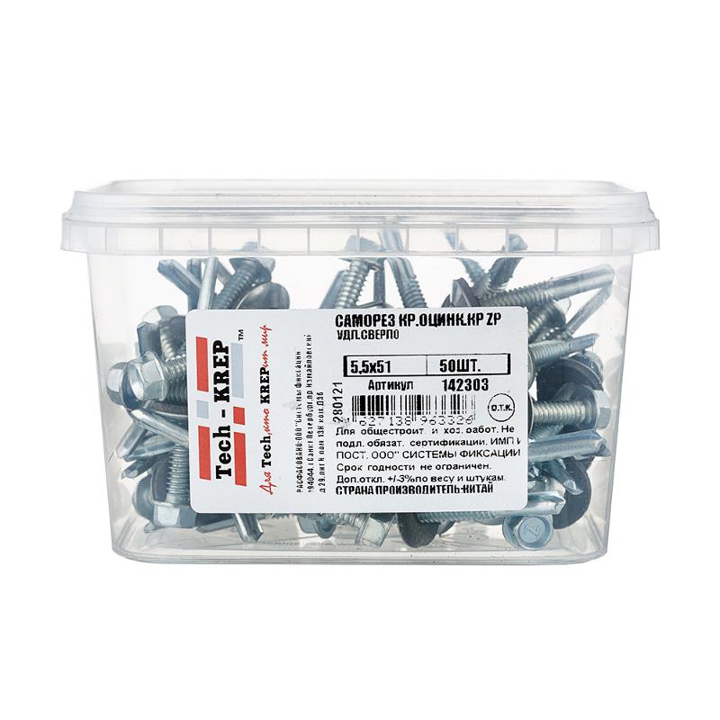 Саморез кр. оцин КРс ZP 5,5х51 удл.сверло 50шт - контейнер ( 0,453 кг) | 142303 | Tech-KREP