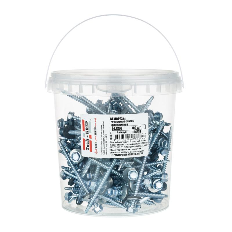 Саморез КР ZP св. 4,8х76 (100 шт) - ведро ( 0,858 кг) | 104749 | Tech-KREP