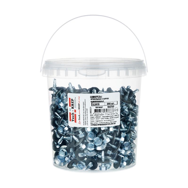 Саморез КР ZP св. 5,5х19 (300 шт) - ведро ( 1,728 кг) | 104750 | Tech-KREP