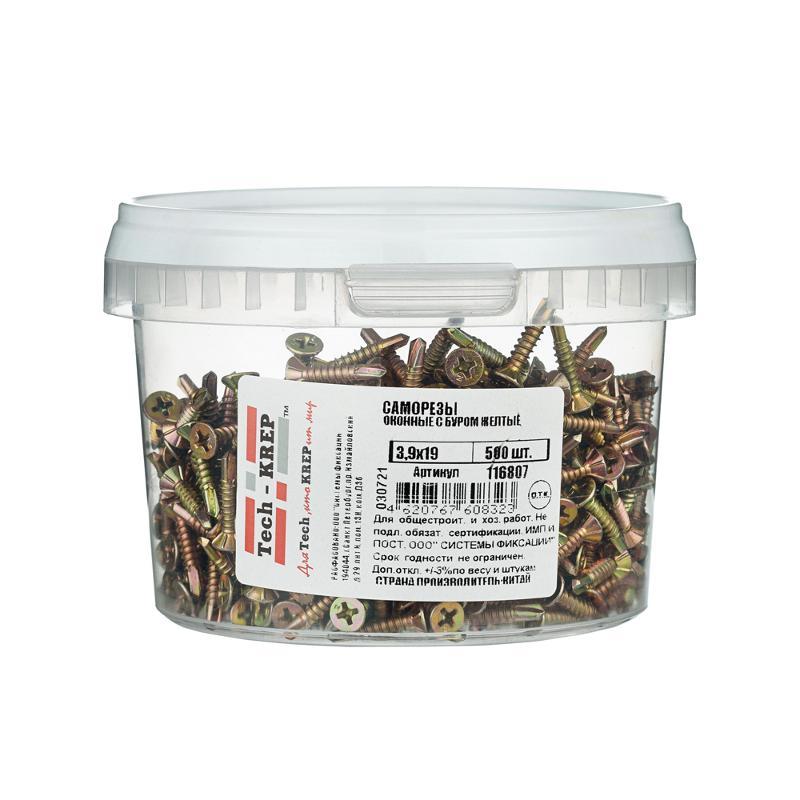 Саморезы оконные с буром 3,9х19 желтые (500 шт) - ведро мал ( 0,658 кг) | 116807 | Tech-KREP
