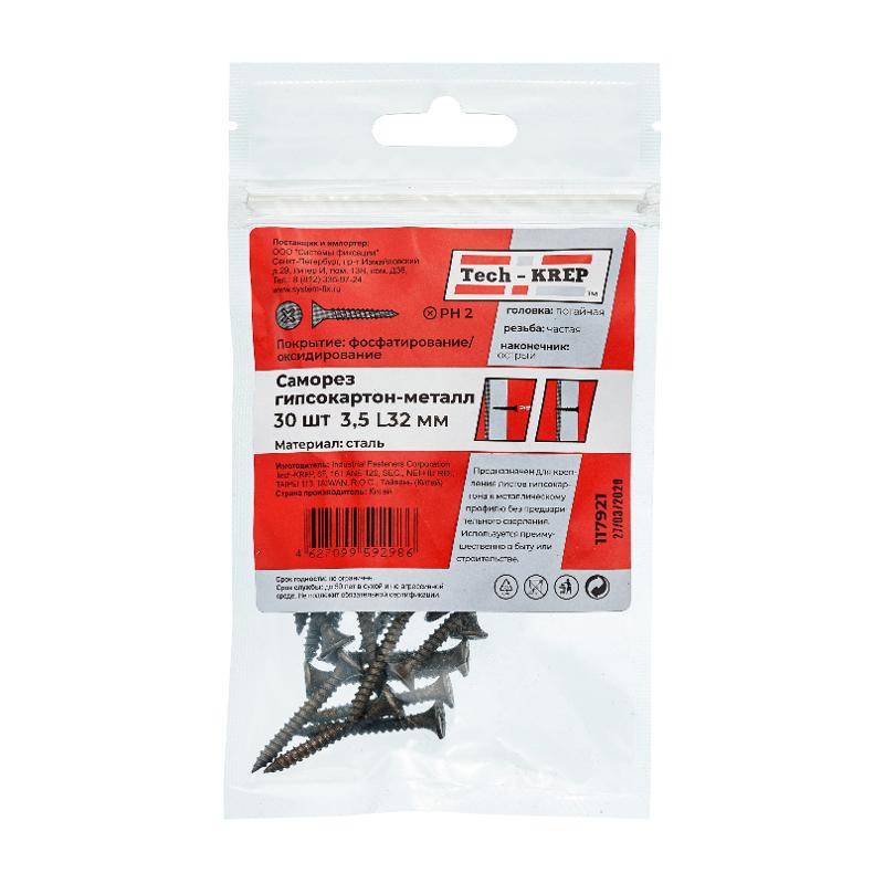 Саморез ШСГМ 3,5х32 (30 шт) - пакет ( 0,049 кг) | 117921 | Tech-KREP