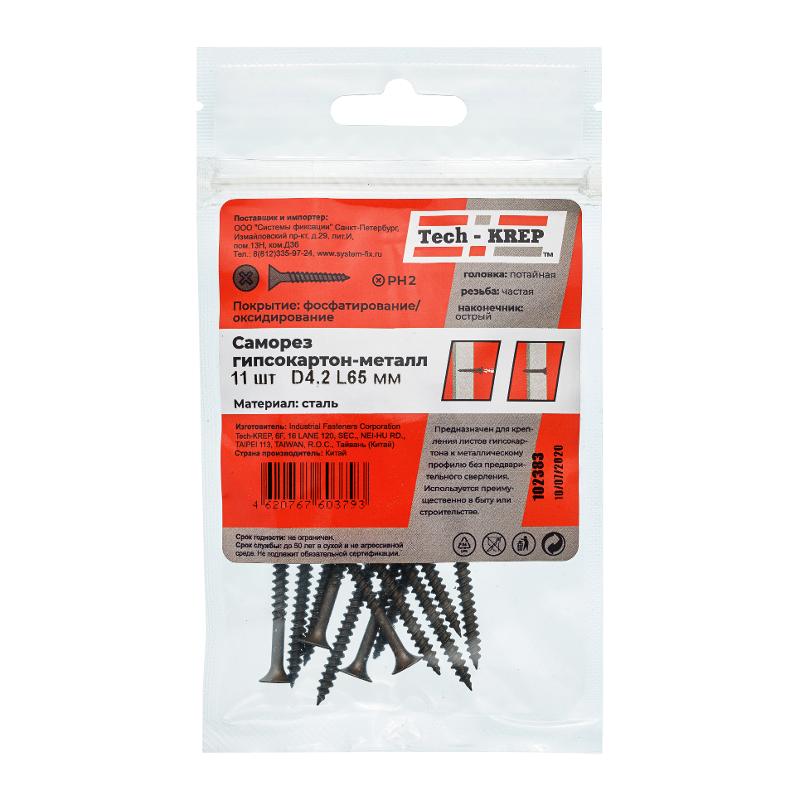 Саморез ШСГМ 4,2х65 (11 шт) - пакет ( 0,039 кг) | 102383 | Tech-KREP