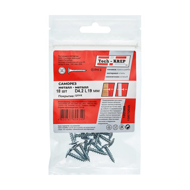Саморез ШСММ 4,2х19 (18 шт) - пакет ( 0,034 кг) | 102389 | Tech-KREP