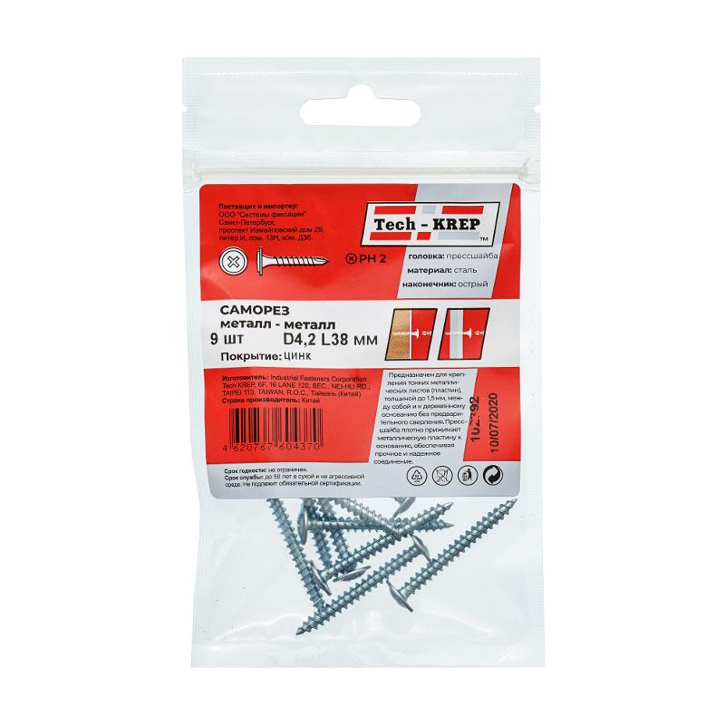 Саморез ШСММ 4,2х38 (9 шт) - пакет ( 0,029 кг) | 102392 | Tech-KREP
