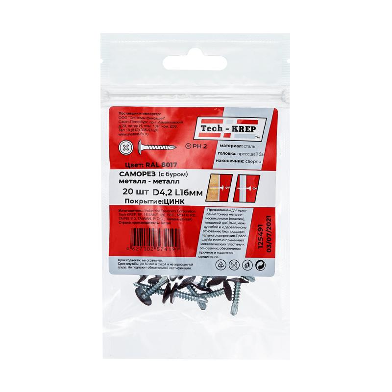 Саморез ШСММ св. 4,2х16 т.кор. KP RAL 8017 (20 шт) - пакет ( 0,036 кг) | 125491 | Tech-KREP